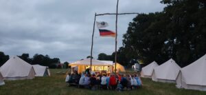 Und was wäre ein Zeltlager ohne Wimpel, Kreuz, Andacht und Lagerfeuer am Abend?! Diese Frage können wir nicht beantworten, denn das ist alles da! Die richtig Mutigen unter uns bewachen abends den Zeltlagerwimpel vor den Jugendlichen aus unserer Kirche, die diese Trophäe nur allzu gern mit nach Hause nehmen würden.